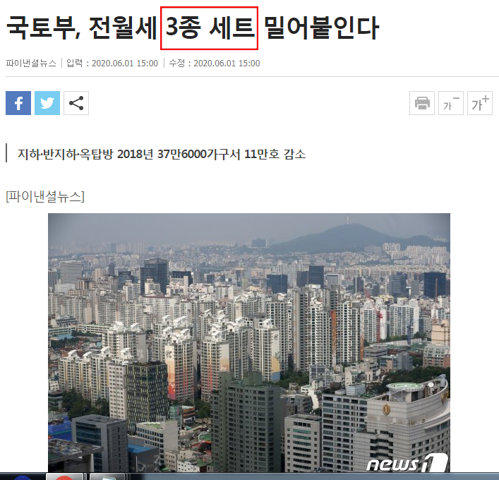 전월세 가격이 오르자 국토부에서 전월세 통제 3종 세트를 밀어 붙인다고 한다.