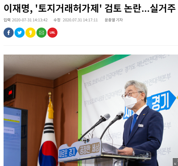 차기 대선주자인 이재명 도지사는 "토지거래허가제"를 검토하고 있다고 한다...